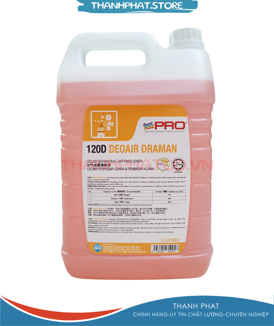 Dung dịch khử mùi Goodmaid Pro GMP 120D DEOAIR DRAMAN Khử mùi phòng, Khử mùi thuốc lá, hươg hoa lài