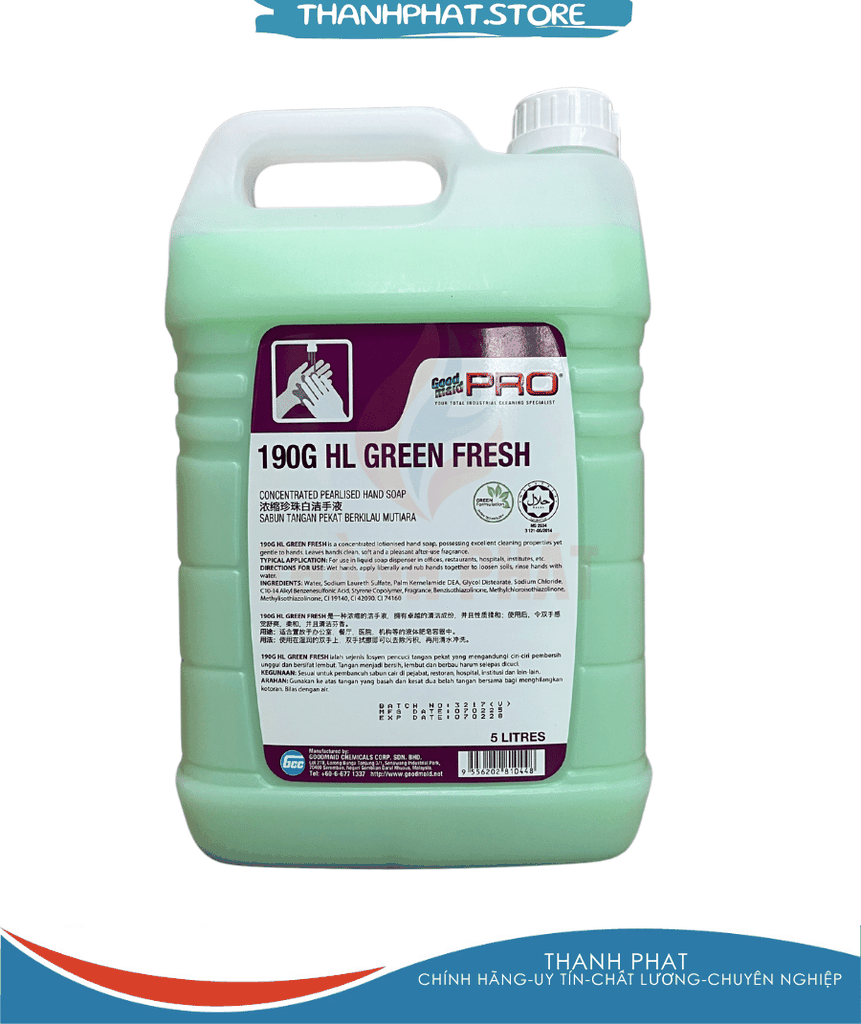 Nước rửa tay hương táo Goodmaid PRO GMP 190G HL là một trong những sản phẩm Nước rửa tay công nghiệp phổ biến, được nhiều người tiêu dùng ưa chuộng, là một loại xà phòng rửa tay đậm đặc, sở hữu đặc tính làm sạch hiệu quả nhưng vẫn dịu nhẹ với da tay. Giữ bàn tay sạch, mềm mại và để lại hương táo nhẹ nhàng sau khi sử dụng. Phù hợp cho việc sử dụng trong máy xà phòng lỏng trong văn phòng, nhà hàng, bệnh viện và viện nghiên cứu.